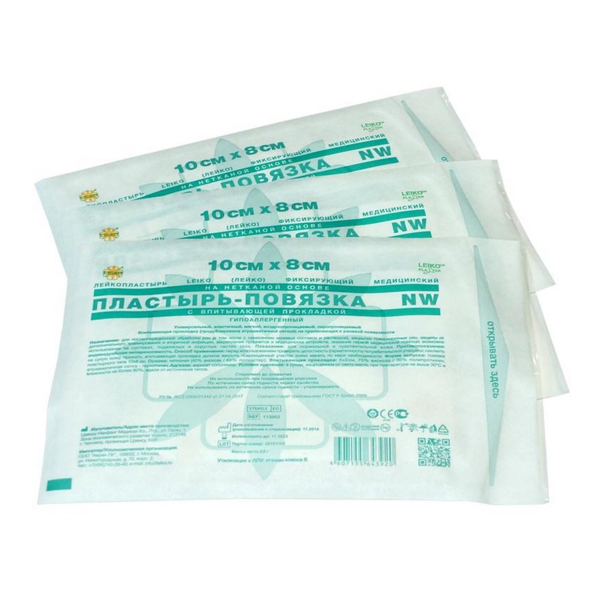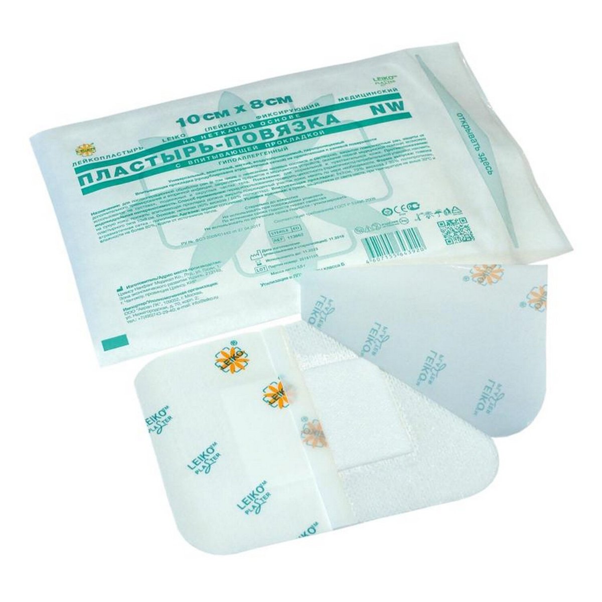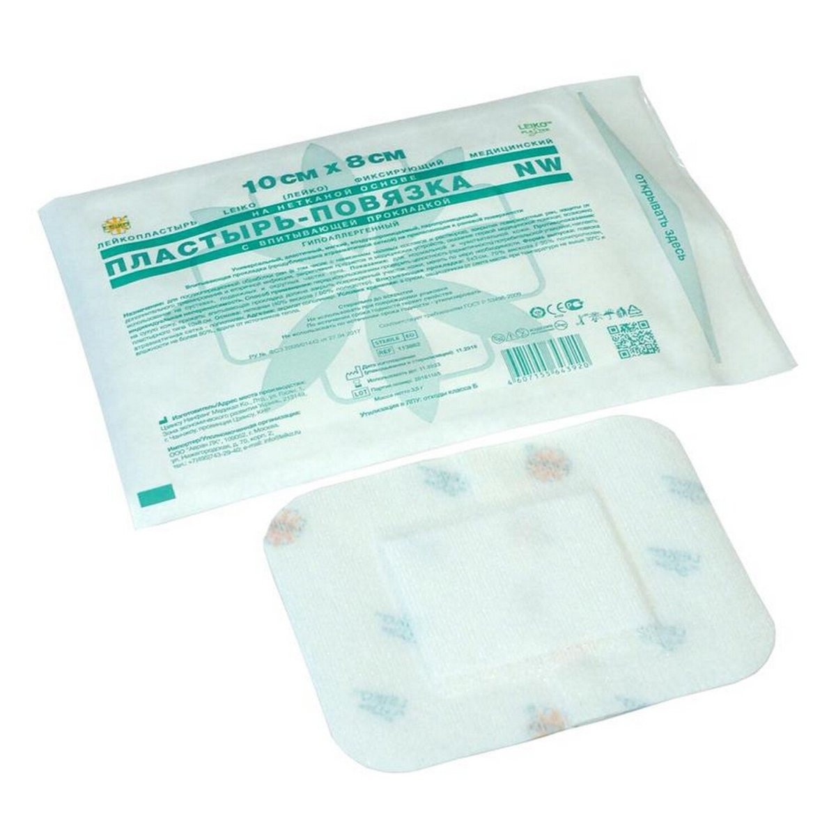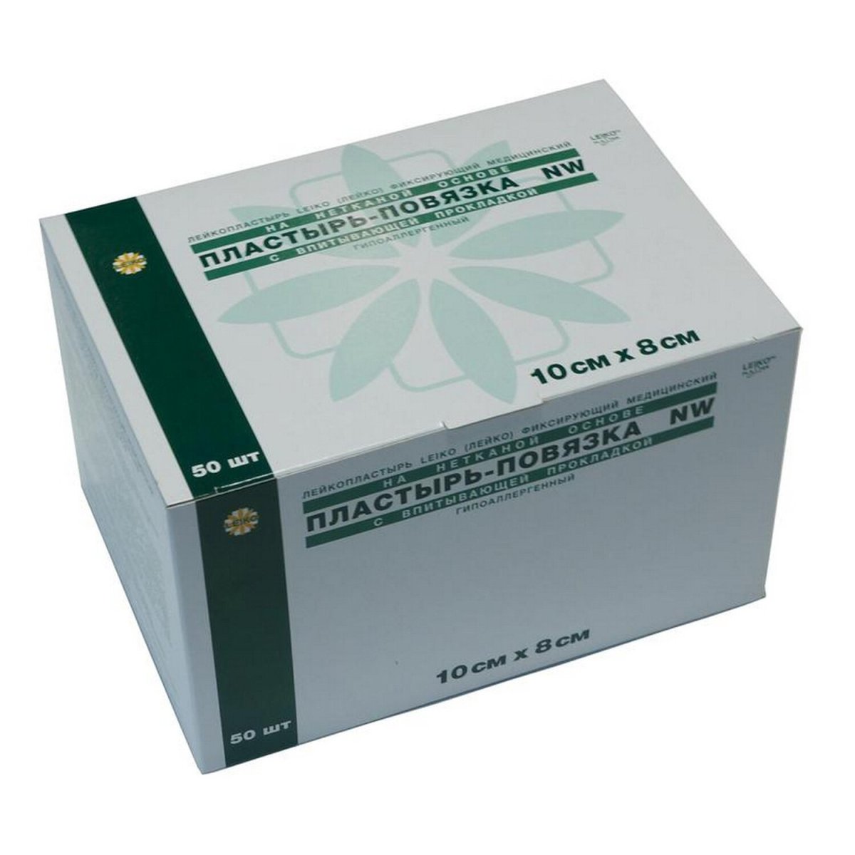 Пластырь-повязка 8х10 см LEIKO КОМПЛЕКТ 50 шт., нетканая основа c подушечкой ш/к 43937, 113862