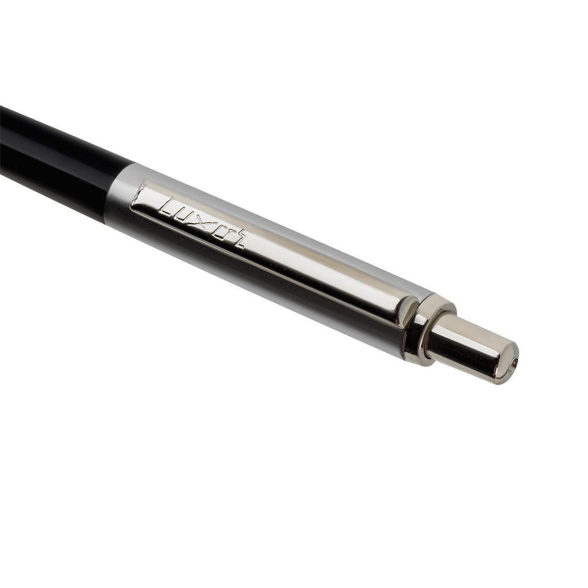 Шариковая ручка Luxor из коллекции Star с кнопочным механизмом – привлекательный инструмент для мягкого и комфортного письма в одно касание. Подарочная ручка синего цвета в комбинированном круглом корпусе из пластика и металла в синем цвете понравится ценителям стильного дизайна. Диаметр пишущего узла – 0,7 мм, благодаря чему получается тонкая и ровная линия толщиной 0, 5 мм. Каждый сможет продемонстрировать все достоинства своего почерка. Клип поможет зафиксировать её на ежедневниках, блокнотах и карманах одежды. Премиальность ручки дополняет стильный подарочный футляр, в который она упакована. Изготовлена в Индии.